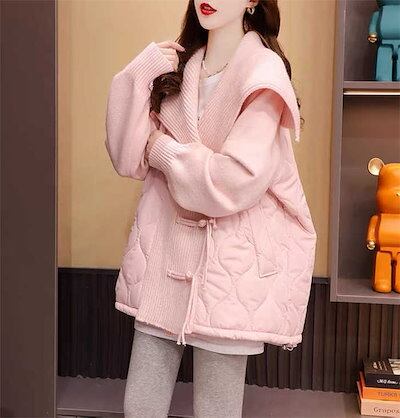 コート ケープ レディース キルティング ジャケット ニット セーターコート キルティングコート 折り襟 中綿 綿入れ 切り替え アウター 無地 ボタン トップス 厚手 羽織り 前開き 上着 長袖 防