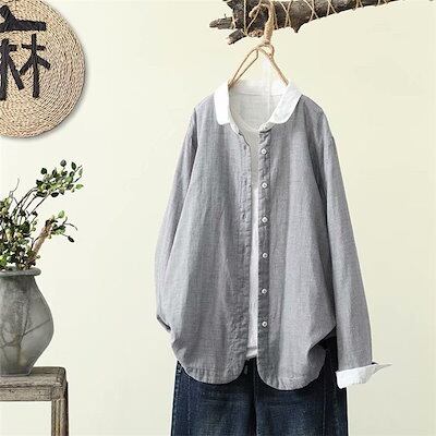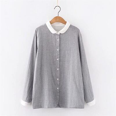 シャツ ダブルガーゼ ガーゼ ブラウス レディース 長袖 コットン 綿 柔らか チェック柄 シンプル 折り襟 ボタン留め 通気性 前開き 大きいサイズ 通勤 OL シンプル おしゃれ 大人 かわいい