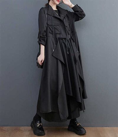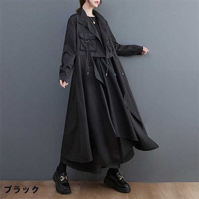 スプリングコート トレンチ コート レディース ロング コート テーラード トップス ロングコート 新作 無地 アウター プルオーバー ノーボタン 長袖 レトロ カジュアル 大人 ゆったり 体型カバー