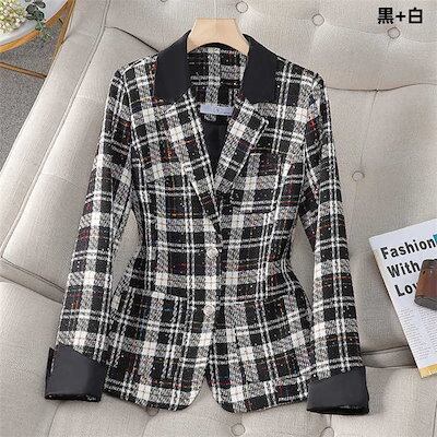 テーラード ジャケット コート レディース テーラードジャケット スーツ アウター チェック柄 新作 春 秋 トップス 体型カバー ゆったり フォーマル ボタン 大人 カジュアル 通勤 OL オフィス