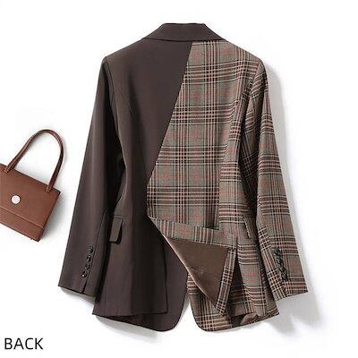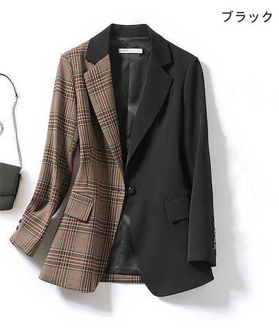 テーラード ジャケット レディース 新作 スーツ チェック柄 長袖 アシンメトリー コート トップス テーラードジャケット 春 秋 アウター デザイン感 レトロ 前開き 羽織り ポケット ボタン フォ | Jeannede ジャンヌデ