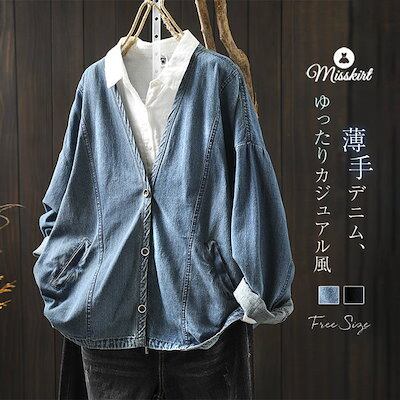 デニム コート ジャケット レディース 新作 長袖 無地 薄手 綿 アウター シャツ トップス デニムシャツ アウター カジュアル ライトアウター 前開き ボタン 春 秋 大きいサイズ ゆったり 通勤