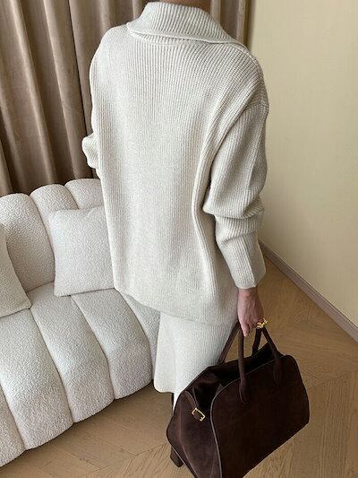 ニットアップ ニットセットアップ レディース 2点セット カーディガン+スカート カットソー リブニット 前開き ボタン トップス 長袖 ゆったり 着回し セーター Vネック スリット入り タイトスカ
