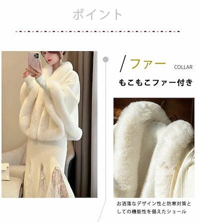 もこもこファーショール レディース 厚手 ストール ポンチョ フェイクファー ボレロ 冬 ふわふわ ニット 編上げ ケープ パール付き 大判 暖かい 振袖 着物 和装 超可愛い ボタン マント アウタ