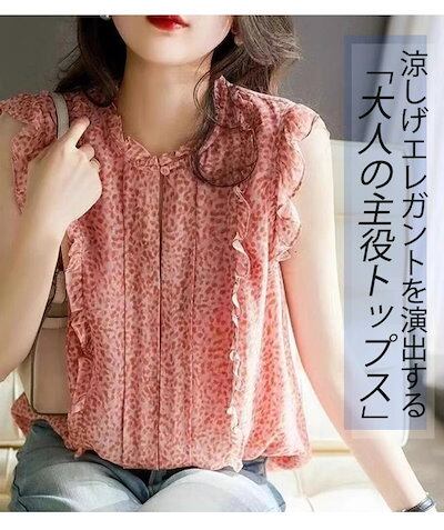 シャツ シフォン 夏 ノースリーブ レディース プルオーバー フリル 夏シャツ ボタン タックシャツ 水玉柄 プリント ドッキング トップス 白 花柄 袖なし シャツブラウス 薄手 プリントシャツ 夏
