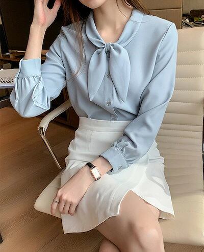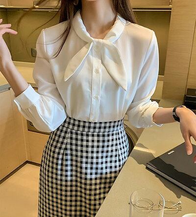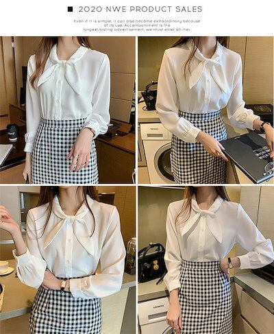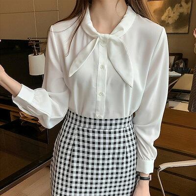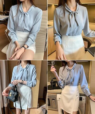ブラウス レディース ボウタイブラウス シャツブラウス 長袖 リボン付け ボウタイ シフォン ボタン リボンシャツ 高級感 オフィス OL 通勤 無地 薄手 インナー 秋冬 春 韓国ファッション カジ