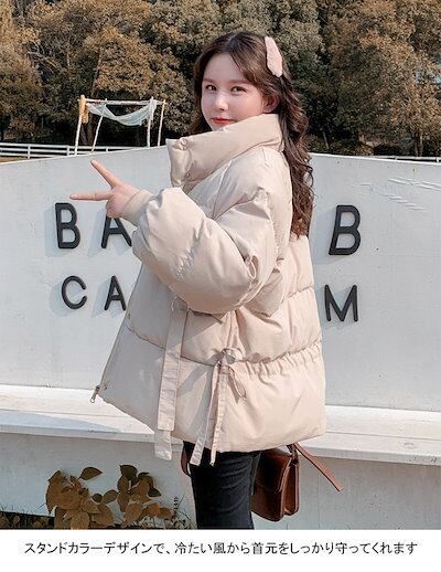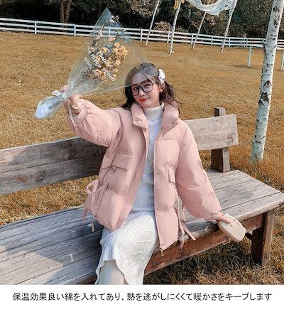 中綿コート レディース アウター 無地 立ち襟 長袖 中綿入れ 軽量 防風 保温性 前開き トップス カジュアル ジッパー付き ボタン付き ポケット付き 暖かい ゆったり 体型カバー シンプル 秋冬
