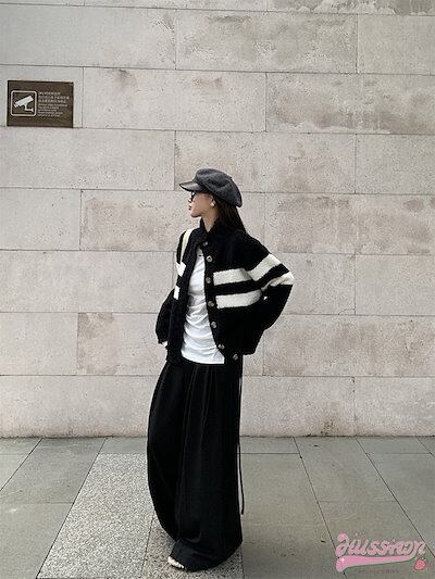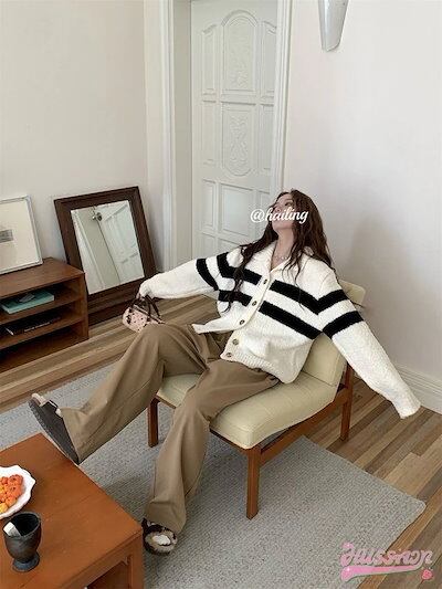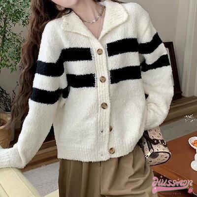 トップス カーディガン セーター ボタン Vネック ック ストライプ 襟 長袖 かわいい おしゃれ カジュアル 韓国ファッション レディース お出かけ