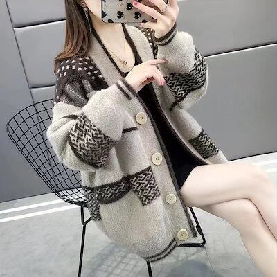 切替 柔らかい ニット 羽織り 防寒 ニットカーディガン セーター 上着 ノーカラー 秋冬 通学 ロングコート モコモコ ボタン留め シンプル レディース 可愛い 防寒 コーディガン ロング丈 アウタ