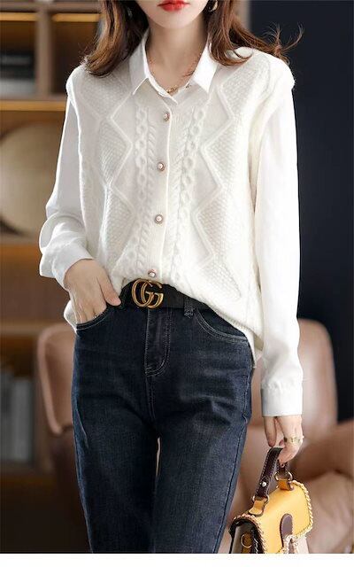 きれいめ ノースリーブ 可愛い ボタン留め Vルネック 重ね着 ニットトップス カーディガン セーター ドルマン ベスト ゆったり レディース ニット セーター 前開け レイヤード 春秋 ドルマンスリ