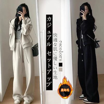 2枚購入で 2oo円FF!新作 カジュアル セットアップ レディース 裏起毛 厚手 運動 パーカー スウェット ワイドパンツ 二点セット 着痩せ 大きいサイズ 裏起毛ファッション