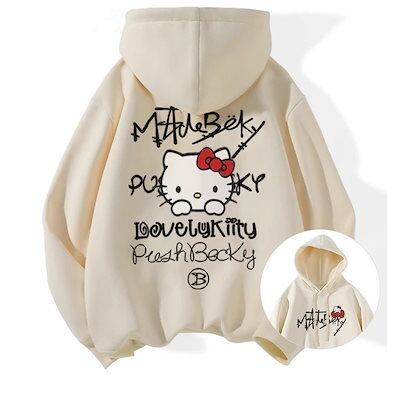 日系 かわいい Hello Kitty 裏起毛 百掛け フード付きパーカー 秋冬 ファッション レディース トレーナー