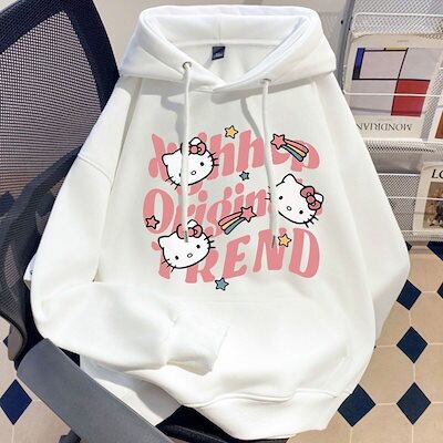 2025 新しい レディース 秋冬 ゆったり 裏起毛 トレーナー 流行り hello kitty 爆発的なヒット カジュアル フード付きパーカー