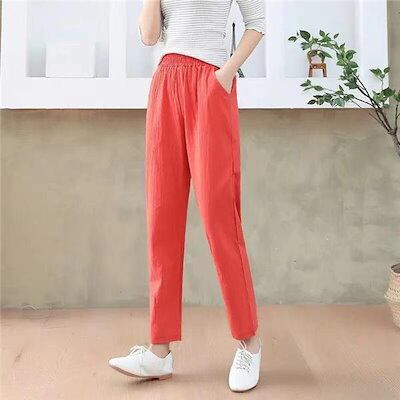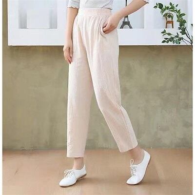 超人気 テーパードパンツ リネン レディース 楽ちん 美脚 チノパンツ 着痩せ 事務服 体型カバー カラフル オフィス 通勤 お出掛け シンプル 大きいサイズ