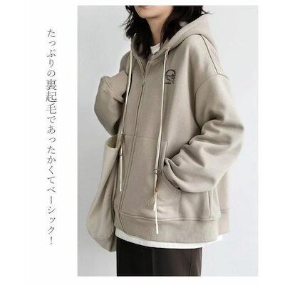 (出荷が早い)裏起毛 パーカー レディース トップス レディース 暖かい あったか アウター 長袖 刺繍ロゴ 無地 ビッグサイズ ジップアップパーカー オーバーサイズ ふわふわウ