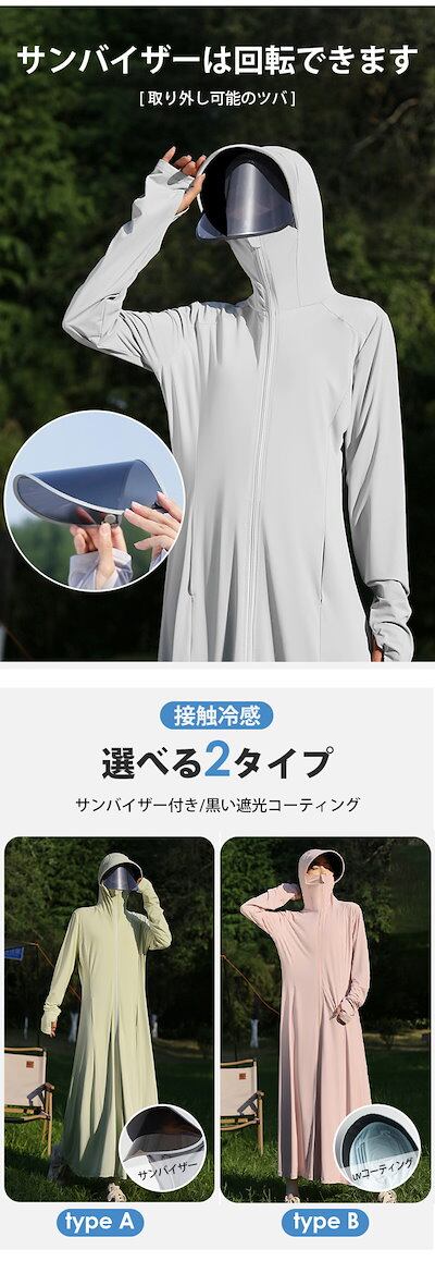 UVカット パーカー ロング uv パーカー ラッシュガード レディース 長袖 大きいサイズ ロング 夏 接触冷感 涼しい 指穴 薄手 日焼け防止 紫外線対策 おしゃれ アウトドア サンバイザーつば
