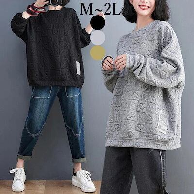 トレーナー レディース スエット パーカー チュニック ハート ロングトレーナー オーバーサイズ ミディアム ロング ビッグシルエット 大きめ ゆったり 春秋冬 M L 2L