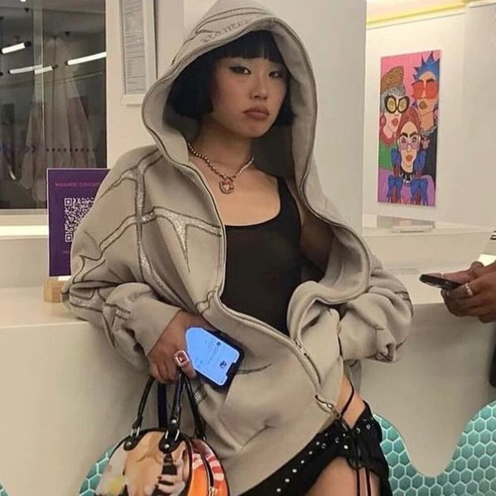 女性のためのアメリカの冬のスウェットシャツ、y2k、ゴシック、ヒップホップ、カップルのパーカー、ラインストーン、フルジップアップ、原宿、特大、グランジジャケット、2023 パーカー ジャージ y2k T240908165652_02 | Jeannede ジャンヌデ
