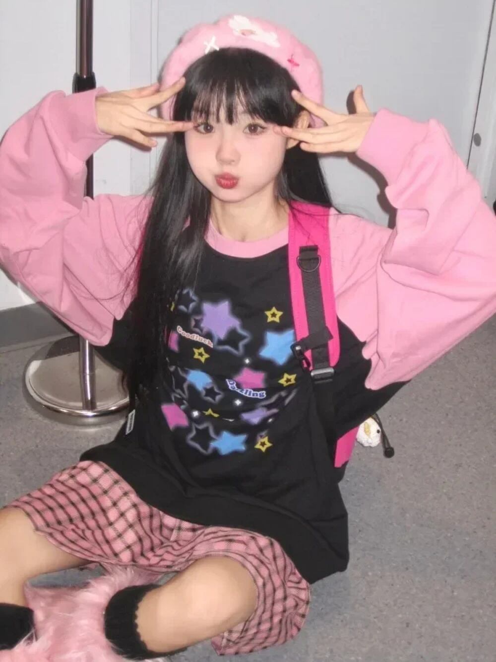 Adagirl-女性のための特大の星のグラフィックパーカー、美的lanスリーブのスウェットシャツ、原宿トップス、カワイイ服、y2k、e-girl、カワイイ パーカー ジャージ y2k T240908165736_02