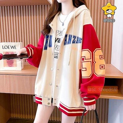 パーカーレディーストップス冬裏起毛厚防寒暖かい長袖配色数字柄ジップアップスウェットトレーナーアウタージップおしゃれカジュアル