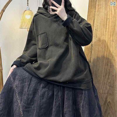 レディース カジュアル パーカー エキゾチック 冬 レトロ フライド カラー ダメージ 加工 フード付き ステッチ 女性用 ベルベット スウェットシャツ