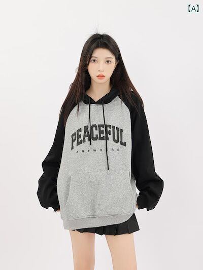 レディース パーカー アメリカン レトロ ラグランスリーブ フード付き スウェットシャツ 女性 秋冬 ベルベット 厚手 プルオーバー ジャケット