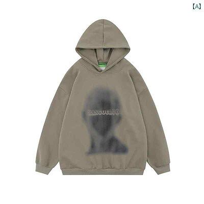 パーカー レディース メンズ ストリート ファッション ぼやけた ポートレート プリント トレーナー 秋冬 カジュアル カップル フード ジャケット