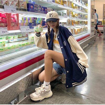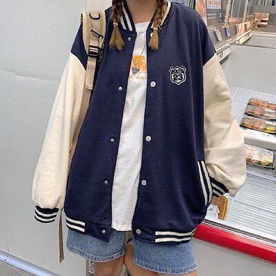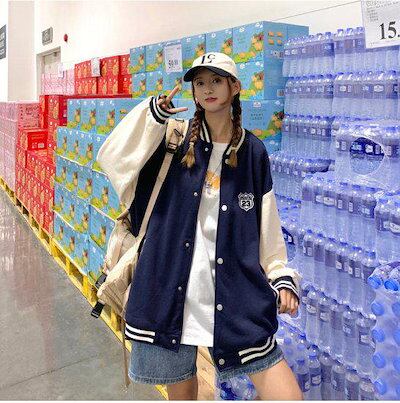スタジャンスタジアムジャンパージャケットブルゾンバイカラーワッペンスナップボタンレディースメンズカジュアルアメカジかわいいスポーティーゆったり大きいサイズ体型カバー秋冬オーバーサイズアウター羽織上着韓