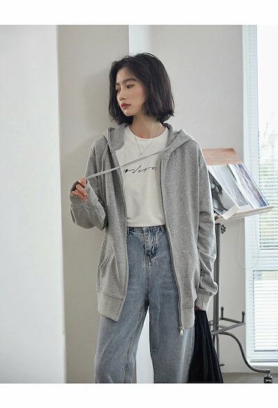 スウェットパーカー パーカー ジップパーカー レディース スウェット素材 ジップ トップス 長袖 ジップスウェットロングパーカー 綿 フード付き ロング丈 ライトアウター きれいめ カジュアル シンプ