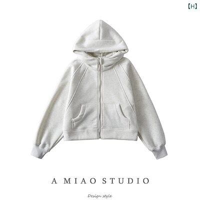 レディース パーカー ベルベット 厚手 フード スウェットシャツ アメリカン レトロ 秋冬 女性 ジッパー ショート コート