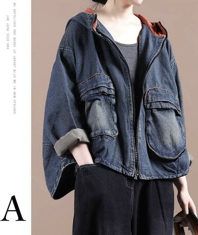 パーカー レディース デニム デニムパーカー 長袖 トップス ジップアップ フード付き 大きいサイズ