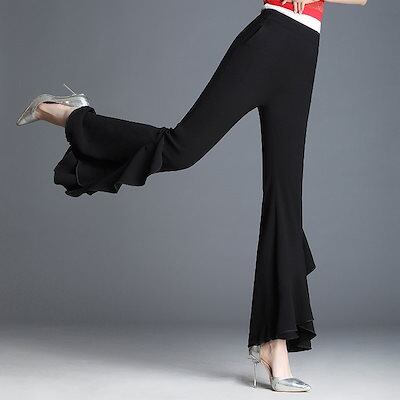 韓国ファッション ハイウエスト フレアパンツ 新品 薄手 垂れ感 ロングズボン 修身 着痩せ レディースパンツ