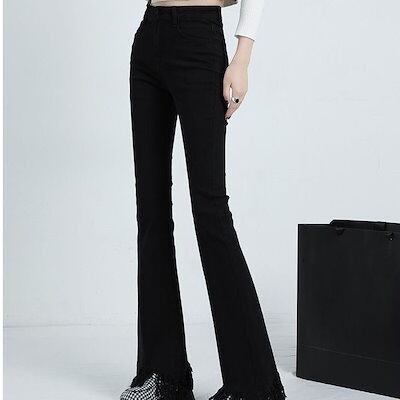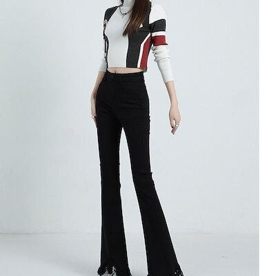アメリカ ヴィンテージ レディー 春秋 ギャル フレアパンツ 韓版 ハイウエスト スリム フリンジ ジーンズ