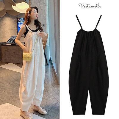夏 サロペット ワイドパンツ マタニティウェア 韓国ファッション レディース リネン素材トップス 綿 オールインワンオールインワンパンツ 大きいサイズ フレアパン