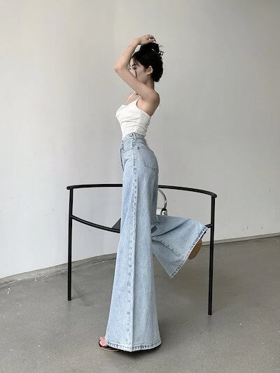 デニムパンツ スラックスパンツ レトロ 港風 ジーンズ デニム ワイドパンツ ゆったり ハイウエスト 着痩せ ズボン 凉しく 快適 プリーツ レディース ズボン フレアーパンツ