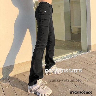 ブーツカットパンツ デニム レディース ジーンズ ボトムス ローライズ フレア ベルボトム 無地 サイドポケット シンプル スリムパンツ ストリート