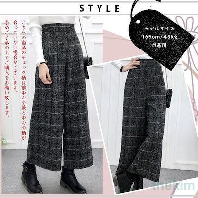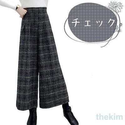 ワイドパンツ レディース ガウチョ キュロット フレア スカーチョ スカンツ ハイウエスト 九分丈 ロング丈 チェック 大きいサイズ 厚手 暖かい 起毛 秋 冬 秋冬