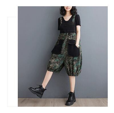 サロペット オーバーオール レディース デニム 夏 オールインワン ハーフ ひざ丈 サルエルパンツ パンツ フレアー ジャンパースカート デニムパンツ ジーンズ テーパード サルエル ボトムス ワイド