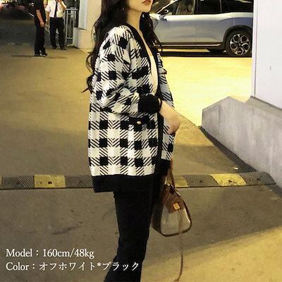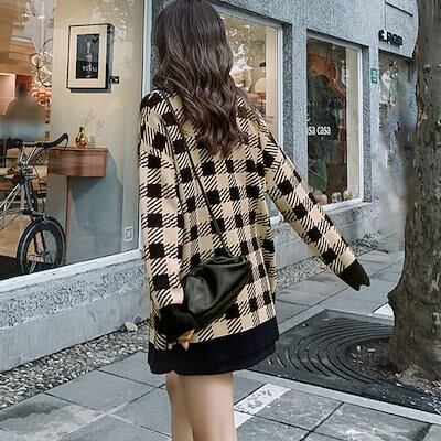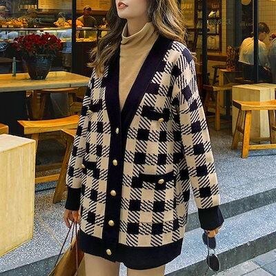 ニットカーディガン レディースチェック柄