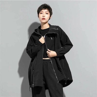 斜めジップパーカーブルゾン ブルゾン パーカー レディース ライトアウター ジャケット 羽織り 長袖 アシンメトリー スタンドカラー 斜めジップ 裾変形 秋 冬 無地 モード系 個性的 大人 カジュア