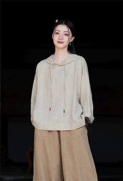 パーカー Tシャツ レディース ブラウス ン フード付き ガーゼ 長袖パーカーTシャツ シャツブラウス 綿麻トップス 無地 大きいサイズ プルオーバー 着心地 オーバーサイズ 長袖 大人