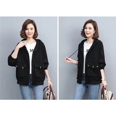 秋新作 パーカー ジャケット レディース ジップアップ パーカー体型カバー チュニック 長袖 ゆったり カジュアル アウター