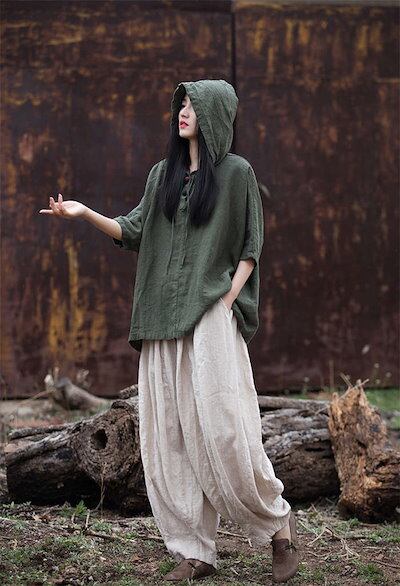 パーカー Tシャツ レディース サマーTシャツ スウェット フードパーカー トップス 半袖パーカー 綿麻 コットンン プルオーバー 涼しい 無地 トレーナー 大きいサイズ ゆったり おしゃれ | Jeannede ジャンヌデ