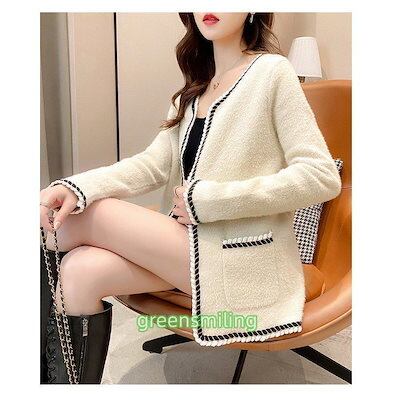 フラワー刺繍 カーディガン ニット トップス 裏起毛&薄手の2タイプ 秋冬 カーディガン レディース 長袖 クルーネック ニットカーディガン 厚手 花柄 刺 重ね