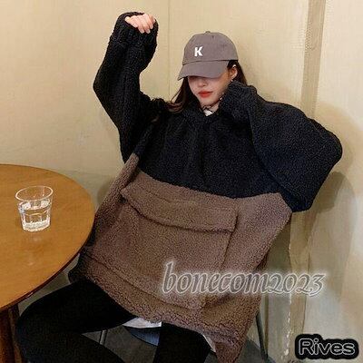 レディース ボアパーカー 秋冬 古着 オーバーサイズ オルチャン 原宿 長袖 韓国ファッション 20代 黒 ブラック 韓国ストリート ストリート系