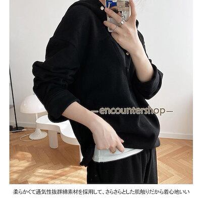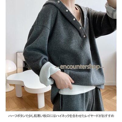 スウェット レディース パーカー 上下セット 無地 ハーフボタン ウエストゴム フード付き ポケット付き ゆったり シンプル 秋冬