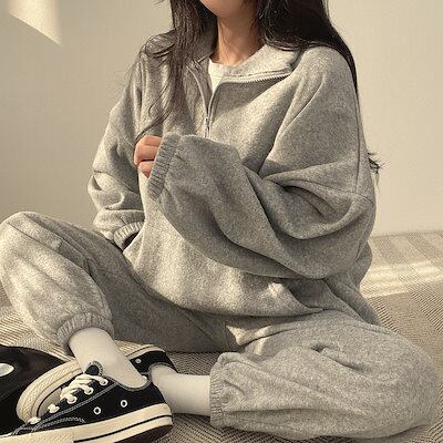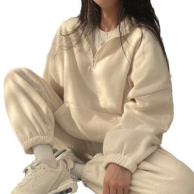 秋冬 セットアップ 裏起毛 長袖 おしゃれ レディース トップス パーカー ズボン 二点セット 運動 韓国ファッション スウェット セットアップ