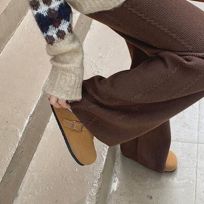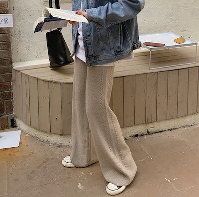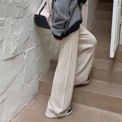 ニットワイドパンツ ゆったりスウェット 韓国ファッション モップパンツ ワイドパンツ スウェット ズボン ニットワイドパンツレディース秋冬 厚手 防寒 ハイウエスト ニットパンツ クリスマス