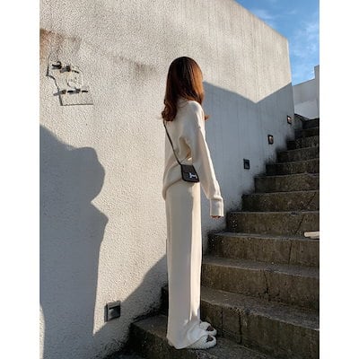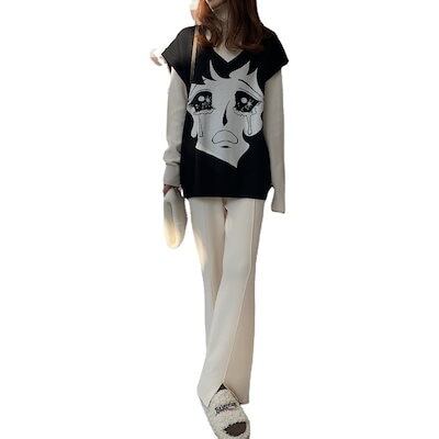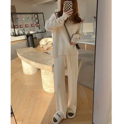 ニットワイドパンツ ゆったりスウェット 韓国ファッション スリット ワイドパンツ スウェット ズボン ニットワイドパンツレディース秋冬 厚手 防寒 ハイウエスト ニットパンツ クリスマス