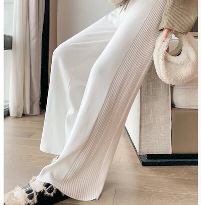 ニットワイドパンツ ゆったりスウェット 韓国ファッション ワイドパンツ スウェット ズボン ニットワイドパンツレディース秋冬 厚手 防寒 ハイウエスト ニットパンツ クリスマス